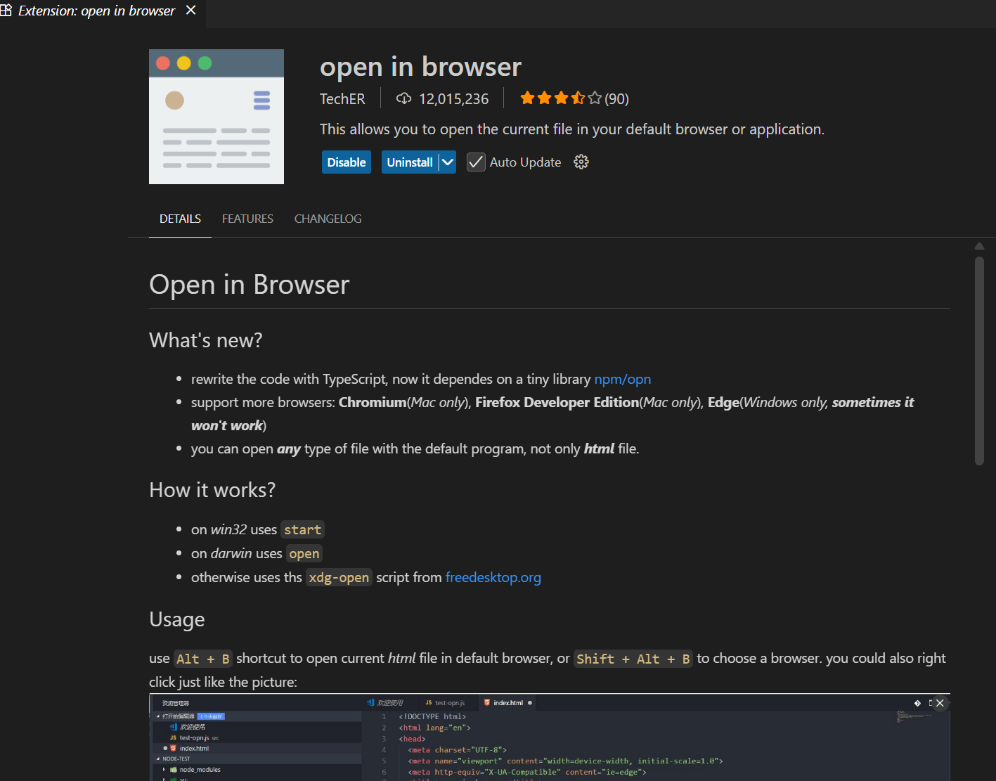이건 HTML 파일을 바로 웹 브라우저로 실행해주는 확장 프로그램이에요.